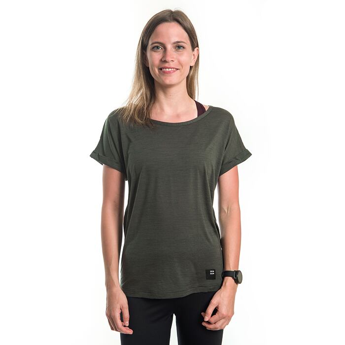 MERINO AIR TRAVELLER WOM SS TEE OLIVE GREEN