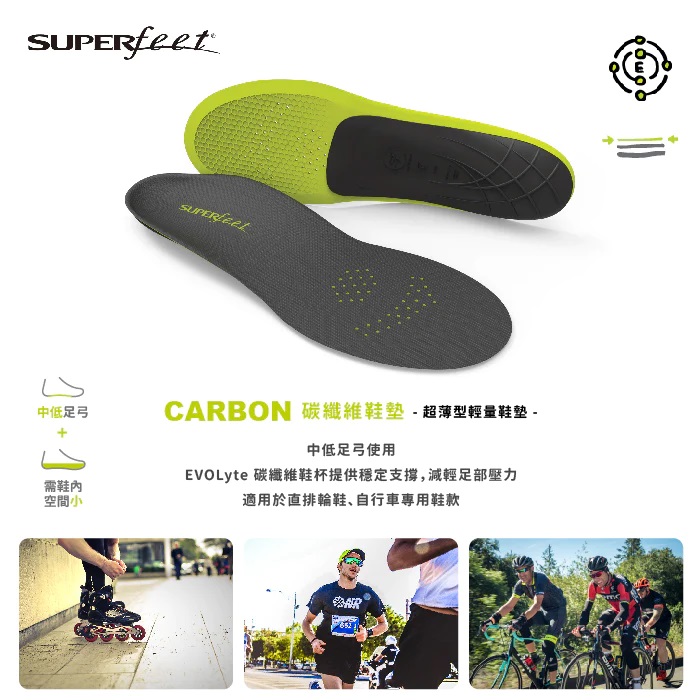 「早在碳纖跑鞋上市之前,Superfeet就推出用碳纖維材質取代塑膠硬底的鞋墊,碳纖維的優點是重量輕、強度夠,我把它用在自行車卡鞋上,好奇如果用在碳板的跑鞋上,有符合世界田徑總會的規定嗎?