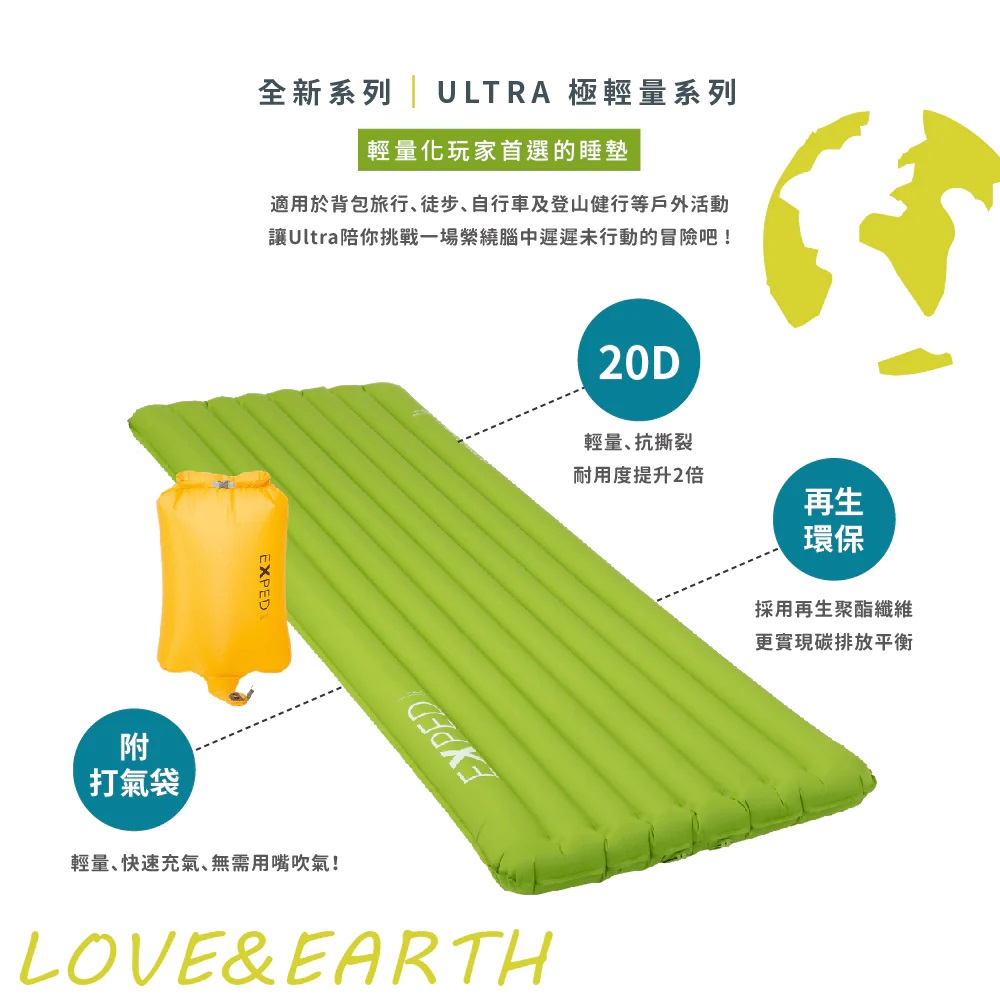購買 EXPED 2022 新版系列充氣睡墊,享 ULTRA 充氣枕頭 加價購700元(M)
