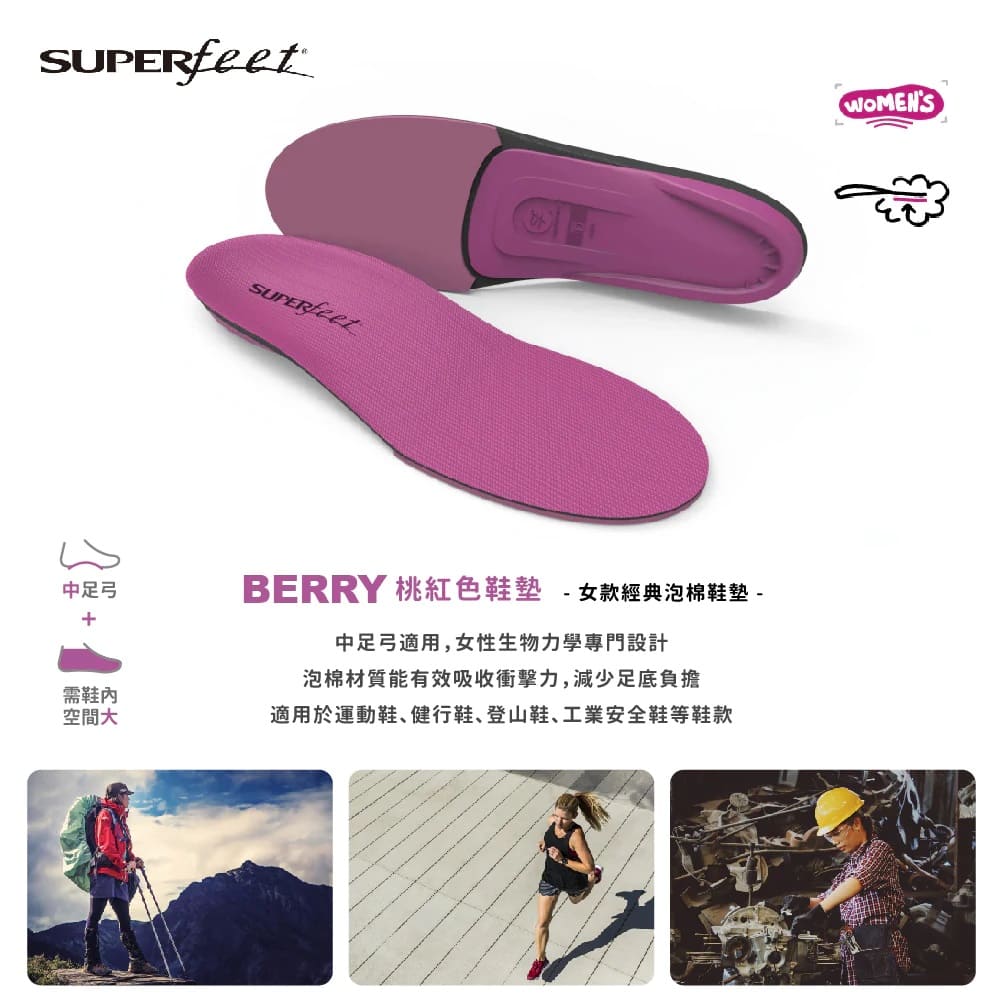 Superfeet BERRY不僅僅是顏色上和男款Superfeet ORANGE不同而已,Sperfeet BERRY是依男女生物力學上的不同,重新設計而成。