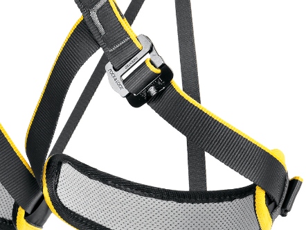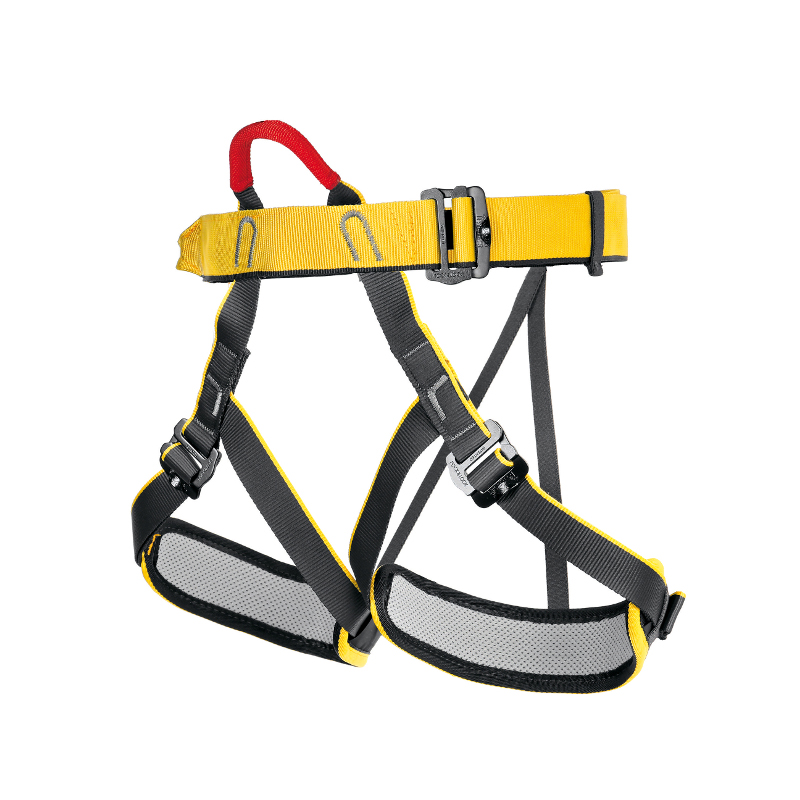 Harness with simple design and padded leg loops mainly for climbing schools, gyms, via ferrata or glacier tours.
