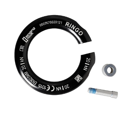 Detachable ring for arborists and workers at height. Intended for semi-permanent connection. Can be loaded in any direction.