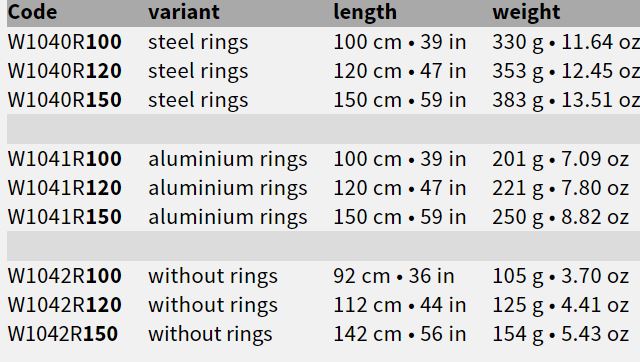 長度:(with the rings) 100, 120, 150 cm • 39, 47, 59 in