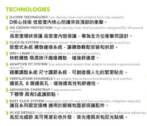 無論是在自行車、下坡滑雪、越野滑雪、登山、攀岩、救難以及工作頭盔的各種領域,皆處於領先的地位。