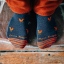 襪子翻面、溫水洗、不能漂白、低速脫乾、低溫烘乾、懸掛晾乾